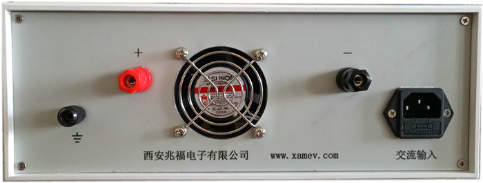 1、西安兆福電子電源的輸入輸出接口均放置在后面板,紅色端子(+)為輸出正極,黑色端子(-)為輸出負(fù)極,接地端在機(jī)內(nèi)與外殼連通。