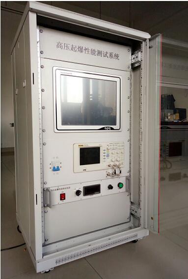 該高壓起爆性能測(cè)試系統(tǒng)選用19英寸標(biāo)準(zhǔn)尺寸圖騰機(jī)柜,機(jī)柜尺寸(高*寬*深):1166mm*600mm*600mm。機(jī)柜配前后門,可打開閉合,使用方便,安全美觀。機(jī)柜內(nèi)部配有阿普奇計(jì)算機(jī)、示波器、高壓電源。高壓電源有內(nèi)控、外控兩種工作方式,均可輸出0~4000VDC連續(xù)可調(diào)電壓以及12V和2000V脈沖電壓,適用于高壓充放電場(chǎng)合。高壓電源置于外控檔位時(shí)可由計(jì)算機(jī)控制高壓電源工作狀態(tài)。示波器可采集起爆負(fù)載的電壓和電流波形送入計(jì)算機(jī),清晰直觀,便于操作。機(jī)柜內(nèi)部從上到下依次為銘牌、計(jì)算機(jī)、示波器、高壓電源機(jī)箱,機(jī)柜示意圖如下: