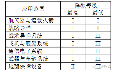 Ⅰ級降額適用于下述情況:設備的失效將導致人員傷亡或裝備與保障設施的嚴重破壞;對設備有高可靠性要求,且采用新技術、新工藝的設計;由于費用和技術原因,設備失效后無法或不宜維修;系統(tǒng)對設備的尺寸、重量有苛刻的限制。