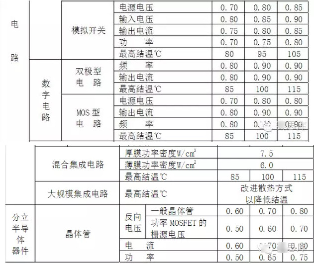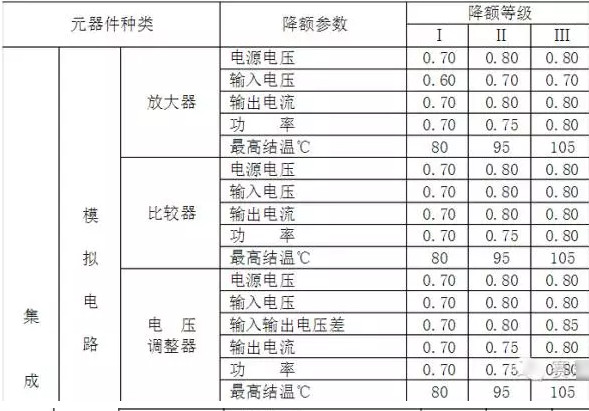 c.Ⅲ級降額 Ⅲ級降額是較小的降額,對元器件使用可靠性改善的相對效益較大,但可靠性改善的絕對效果不如Ⅰ級和Ⅱ級降額。Ⅲ級降額在設計上較易實現(xiàn)。