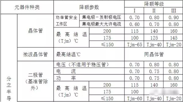 a.Ⅰ級降額 Ⅰ級降額是較大的降額,對元器件使用可靠性的改善較大。超過它的更大降額,通常對元器件可靠性的提高有限,且可能對設備設計難以實現(xiàn)。