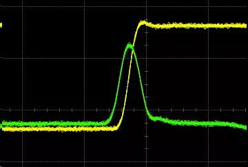 如果我們關(guān)閉受侵害鏈路,只打開串?dāng)_信號,我們在受侵害鏈路可以明顯看到幾十毫伏的小脈沖,脈沖寬度接近干擾信號的跳變時(shí)間。