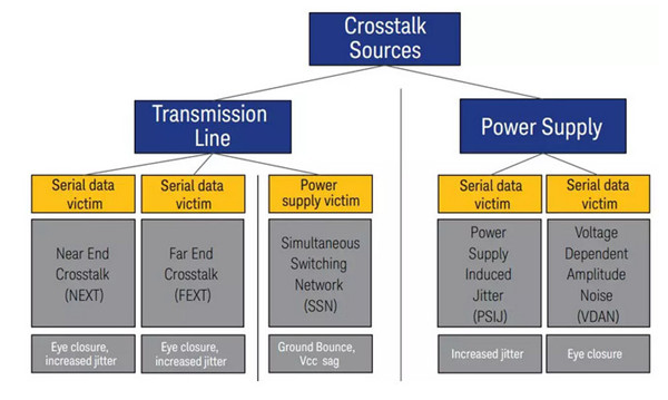 上面我們舉了多種串?dāng)_因素所造成的對信號的影響,歸納來說,可以將串?dāng)_源歸類為傳輸線和電源: