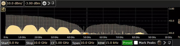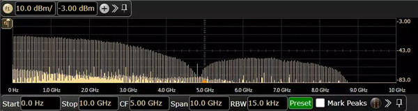 我們原始信號做FFT,信號幅度譜線也很清楚,信號是PRBS碼型,譜包絡(luò)呈現(xiàn)Sinc2(x)的形狀,按信號速率/碼型長度等頻率間隔分布譜線。