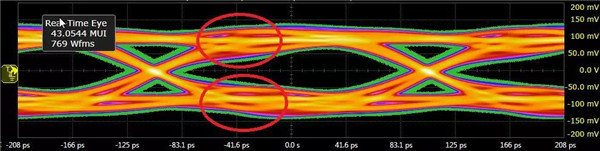 ? 傳輸線之間存在近端和遠(yuǎn)端串?dāng)_,導(dǎo)致眼圖閉合、抖動變大;